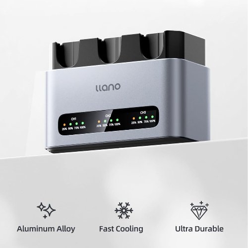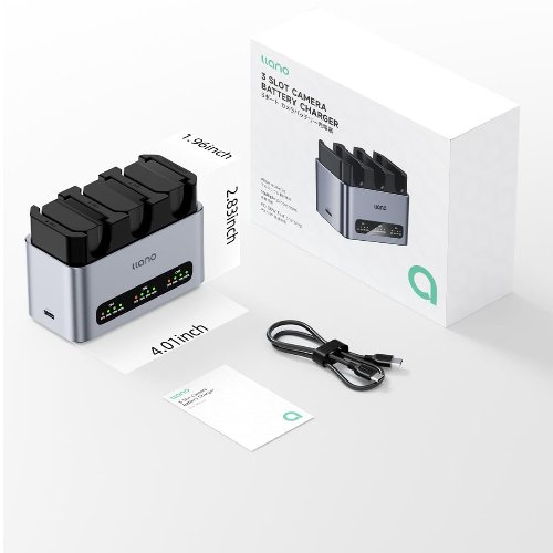 - Triple ranura de carga: permite cargar hasta 3 baterías simultáneamente.