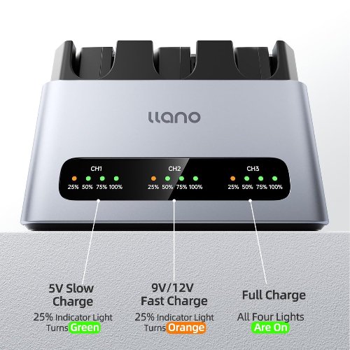 - Seguimiento LED inteligente en tiempo real: cada ranura en el cargador rápido de batería FZ100 cuenta con un indicador LED de 4 etapas (25%/50%/75%/100%) que brilla en tiempo real, por lo que siempre sabe exactamente cuándo la batería fx30 está lista para disparar. No más adivinaciones, simplemente agarra y ve cuando cualquier luz golpee verde sólido.