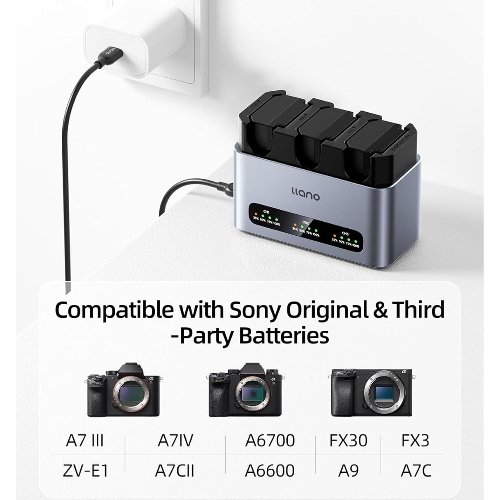 Este kit está pensado para fotógrafos, videógrafos y creadores de contenido que utilizan cámaras Sony y requieren mayor autonomía durante sesiones largas. Incluye tres baterías recargables de alta capacidad y un cargador USB-C PD de 30 W con tres ranuras, capaz de cargar varias baterías al mismo tiempo de forma rápida y segura.
