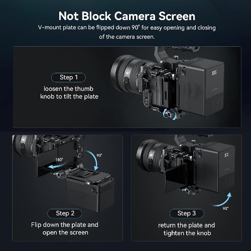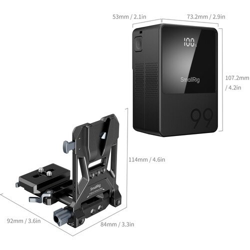 - Solución de energía ligera integrada: combina la batería SmallRig VB99 V-mount con una placa plegable de montaje en V, proporcionando un diseño compacto y eficiente para los creadores que priorizan la portabilidad y las configuraciones que ahorran espacio.