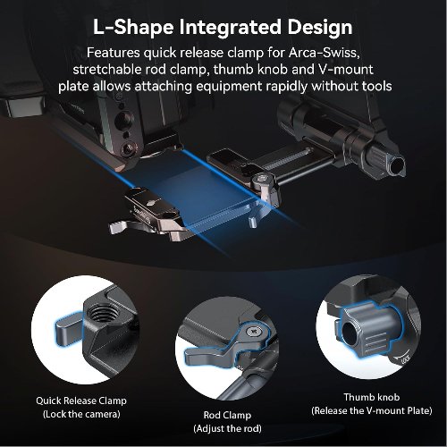 - Compatibilidad multiescenario e implementación rápida: Con una placa de liberación rápida para Arca-Swiss y roscado incorporado, esta placa se adapta a cualquier configuración de equipo sin herramientas. El soporte giratorio de montaje en V se inclina 90° para un acceso instantáneo a pantallas laterales, mientras que el diseño plegable se encoge a portabilidad de bolsillo. Perfecto para cineastas de carreras y armas que necesitan transiciones rápidas de escena entre estudio, campo y viajes.