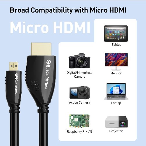 - Conectividad Ultra HD 4K: Conecte su tableta, portátil o cámara directamente a un televisor, monitor o proyector 4K UHD con este cable Micro HDMI a HDMI. Perfecto para ofrecer audio y video de alta definición a pantallas más grandes. Asegúrese de que su dispositivo tenga un puerto Micro HDMI antes de usar.