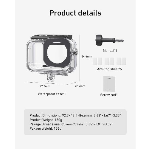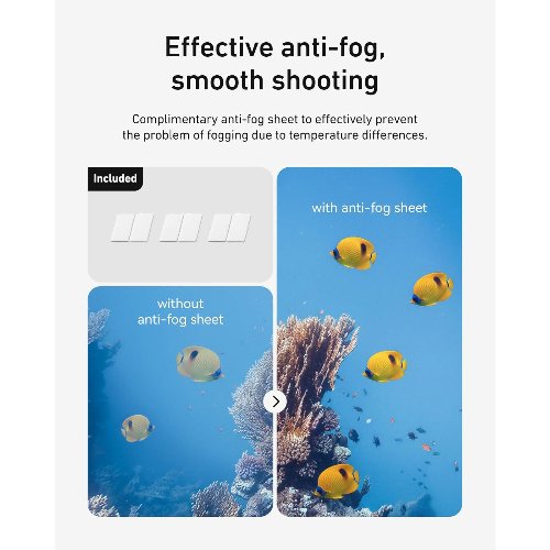- Resistente al agua hasta 196 pies/60 m con esta carcasa para Osmo Action 6 con anillo de sellado impermeable mejorado y hebilla apretada que ayuda a evitar fugas de agua de manera eficaz. Puedes utilizar tu DJI Action 6 para grabar actividad submarina a hasta 196 pies/60m de profundidad sin preocuparte por que entre agua.