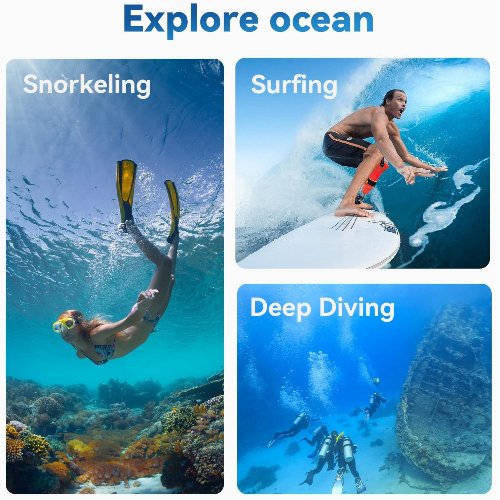 Esta carcasa es ideal para capturar vídeo y fotos bajo el agua con una cámara de acción, y se recomienda para actividades como: