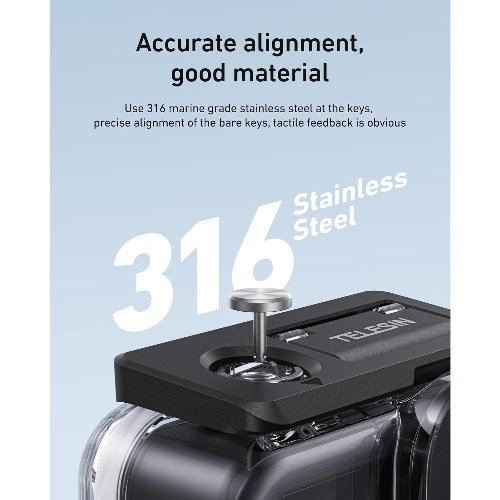 - Funda impermeable TELESIN para DJI Action 6: especialmente diseñada para DJI Osmo Action 6, que se ajusta perfectamente y sella firmemente, proporciona la máxima protección para tu cámara durante actividades extremas al aire libre, buceo en aguas profundas, surf, esnórquel y otras actividades deportivas acuáticas.