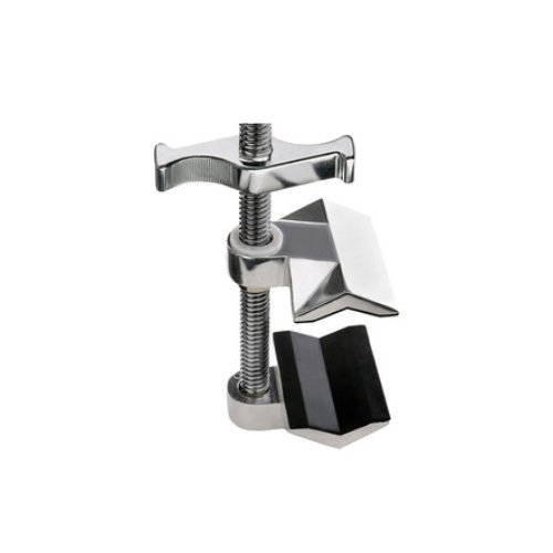 El agarre de mordaza de extremo de 15 cm proporciona un agarre fuerte y sólido de tubos redondos, cuadrados o rectangulares y de muchas otras formas comunes o irregulares. En un extremo del eje de acero están las mordazas fijas, y en el otro un pasador de 5/8″ para montar accesorios u otros elementos de agarre.