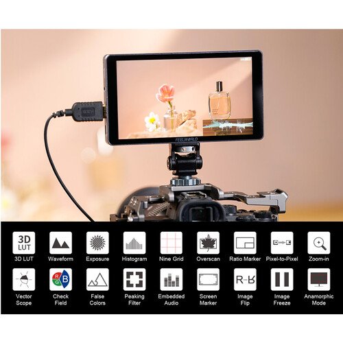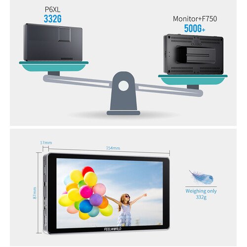 - Monitor de campo FeelWorld P6XL de 6″ con batería incorporada