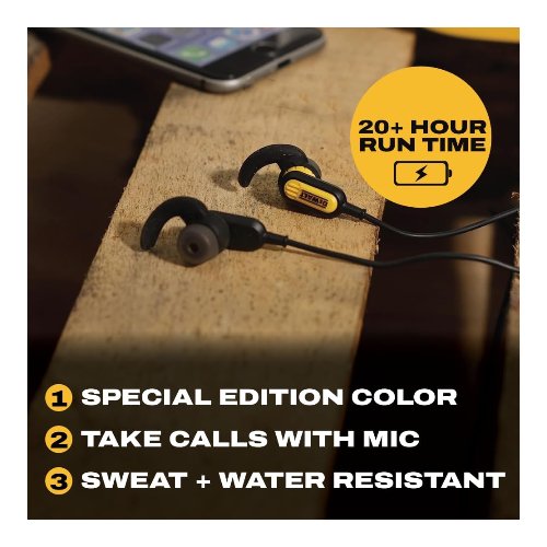 - Permanezca protegido dondequiera que escuche con resistencia al polvo/agua — Con clasificación IP56 para resistencia al sudor y la humedad, estos auriculares DEWALT son ideales para condiciones de trabajo polvorientas y sudorosas