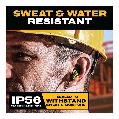 - Permanezca protegido dondequiera que escuche con resistencia al polvo/agua — Con clasificación IP56 para resistencia al sudor y la humedad, estos auriculares DEWALT son ideales para condiciones de trabajo polvorientas y sudorosas.