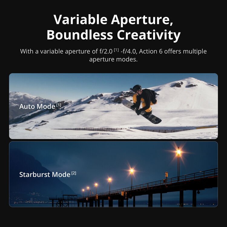 La Osmo Action 6 es la primera cámara de acción de DJI con una apertura variable de f/2 a f/4, rompiendo con el diseño tradicional de apertura fija. La apertura se ajusta manual o automáticamente dentro de cada rango para lograr resultados claros y equilibrados, desde fotos nocturnas con poca luz hasta paisajes detallados.Cuando se combina con el objetivo macro opcional, puede capturar primeros planos extremos con una profundidad de campo poco profunda y un bokeh suave.
