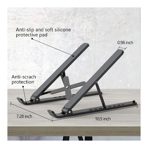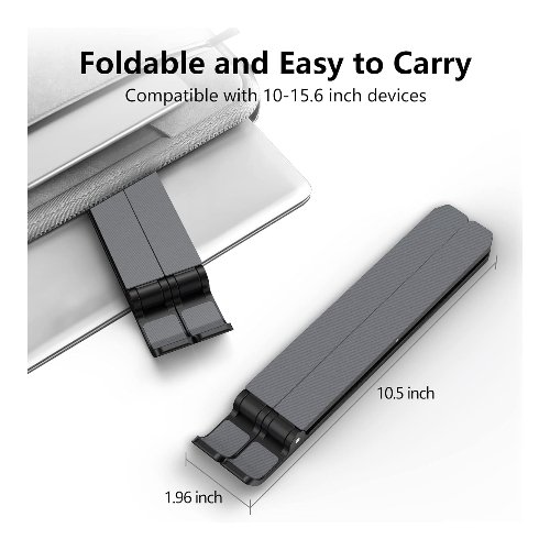 - Portátil y plegable: este soporte portátil para laptop solo pesa 0.57 libras y se puede plegar rápidamente en un tamaño pequeño de 10.5 x 1.96 x 0.92 pulgadas. Fácil de llevar a cualquier lugar. Ideal para personas que viajan mucho por negocios.