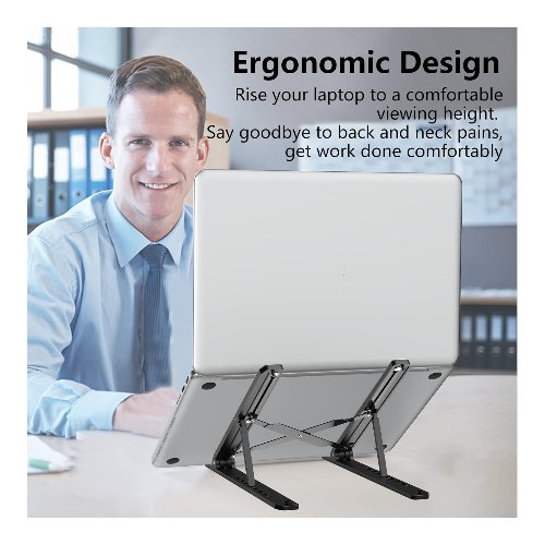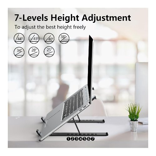 - Ajustable y ergonómico: el soporte para laptop eleva tu portátil de 2.78 a 6.5 pulgadas de altura (7 niveles de altura) para un nivel de ojos perfecto, lo que te permite fijar la postura y reducir la fatiga del cuello, dolor de espalda y fatiga ocular. Muy cómodo para trabajar en casa, oficina y al aire libre.