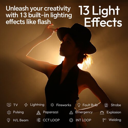 - CCT de 2500-6500K y 13 efectos de escena: esta luz de video bicolor cuenta con una temperatura de color ajustable de 2700 K-6500 K y un CRI de más de 95 que garantizan colores naturales y reales para tomas impecables. Elige entre 13 efectos de escena de un solo toque para que coincidan instantáneamente con cualquier escenario de filmación, desde entrevistas suaves hasta tomas de productos vibrantes. Con una atenuación suave del 0 al 100%, obtienes un control de brillo preciso sin cambio de color.