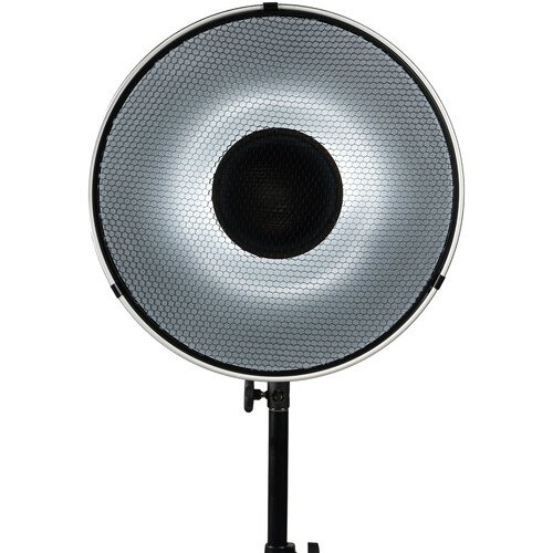 Las paredes internas de textura blanca trabajan junto con el deflector central para proyectar la luz reflejada hacia fuera, generando luz que se desborda alrededor del tema y ayuda a disminuir la apariencia de puntos calientes. Además, el difusor o la rejilla de panal incluidos pueden afinar los resultados de iluminación deseados. Al usar la rejilla de panal, el usuario puede controlar eficazmente el haz de luz y enfocar la luz en el sujeto.