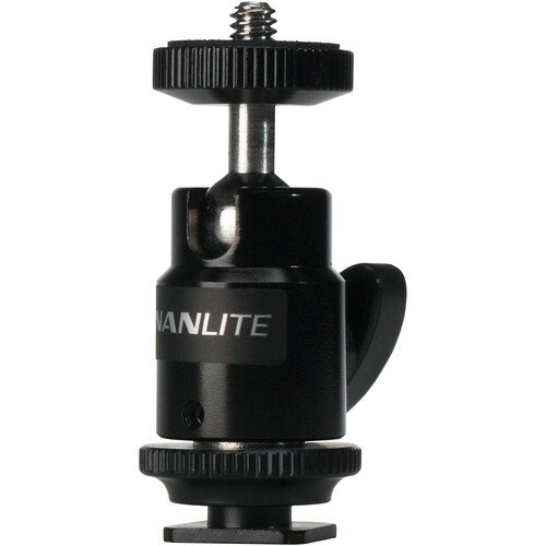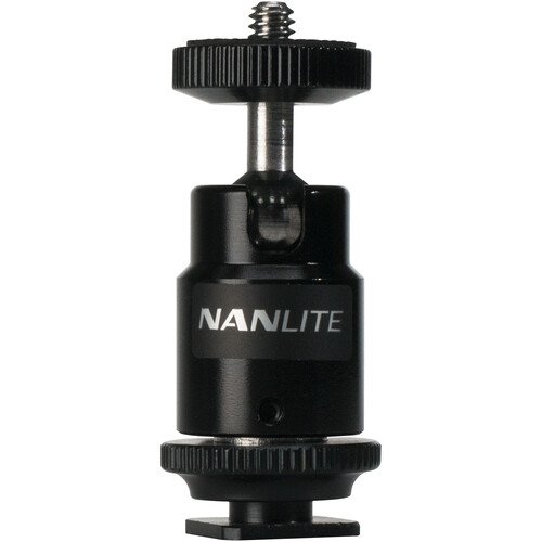 - Cabeza de bola Nanlite Mini con adaptador de zapata caliente y soporte de 1/4”-20