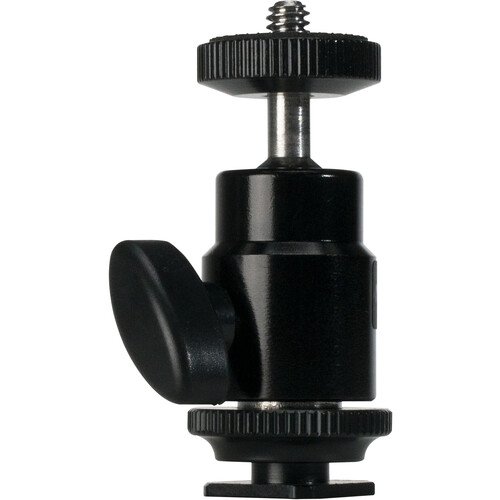 La cabeza de bola Nanlite Mini con adaptador de zapata caliente se desliza de forma segura en la zapata de tu cámara y también ofrece un receptor hembra de 1/4″-20 para montaje en el soporte. En la parte superior hay una cabeza de bola de simple acción con cierre con rosca macho de 1/4″-20 que es compatible con una variedad de accesorios.