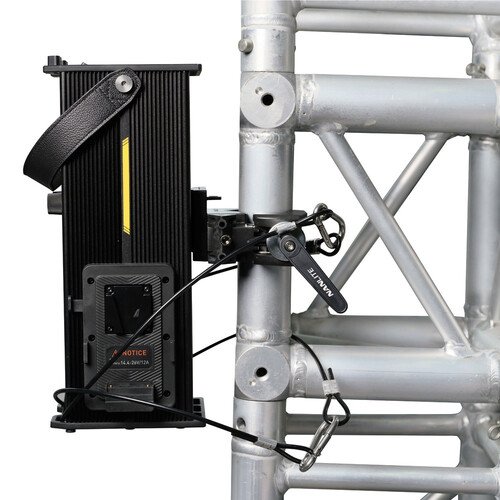 Además de su conveniencia está el diseño del mango de trinquete. Si el mango está colocado demasiado cerca de un objeto, simplemente tire de él hacia afuera para desenganchar, gírelo a la ubicación deseada y colóquelo de nuevo para facilitar el giro. Esta abrazadera también cuenta con un punto de conexión dedicado, diseñado específicamente para mantener su unidad de control Nanlite Forza de forma segura en su lugar. Con la Nanlite Quick-Release Super Clamp, usted puede mejorar con confianza su configuración de iluminación.